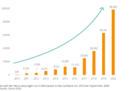 Die Nachfrage nach Elektrofahrzeugen nimmt zu. Die Grafik zeigt, dass diese sprunghaft angestiegen ist. Rekordzahlen wurden im Juli 2020 mit rund 16.800 Neuzulassungen verbucht.